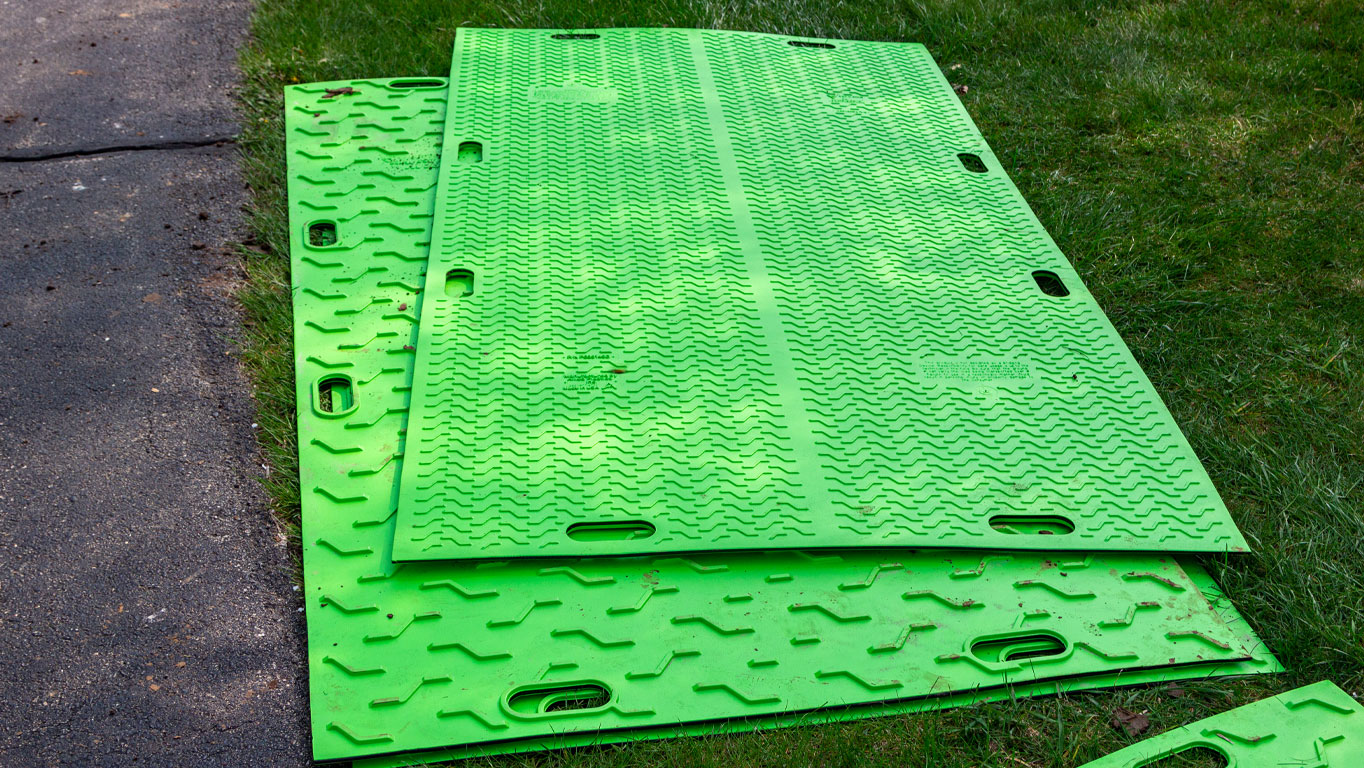 - 3/8″ thick thermoformed HDPE plastic, rated at 80 tons